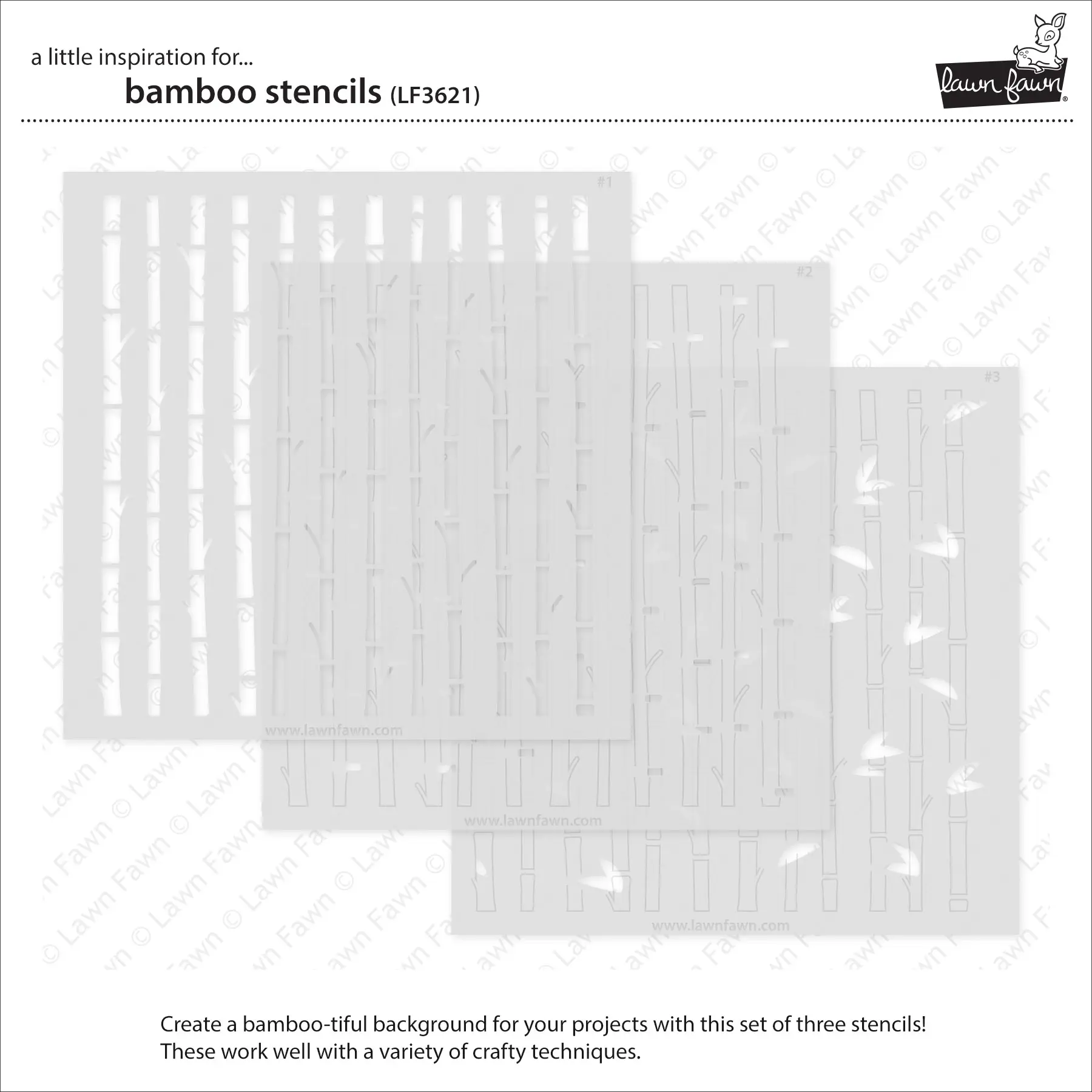 Lawn Fawn – Ink a lush bamboo forest using your favorite medium! These stencils work well with a variety of crafty techniques.