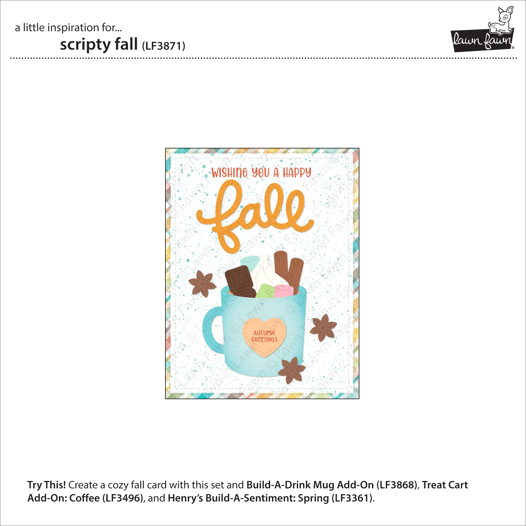 Lawn Fawn – This cute “fall” scripty word is a fun addition to your Fall cards and crafts! Use your favorite colors of cardstock (shiny is super fun) or patterned paper for a unique sentiment each time!